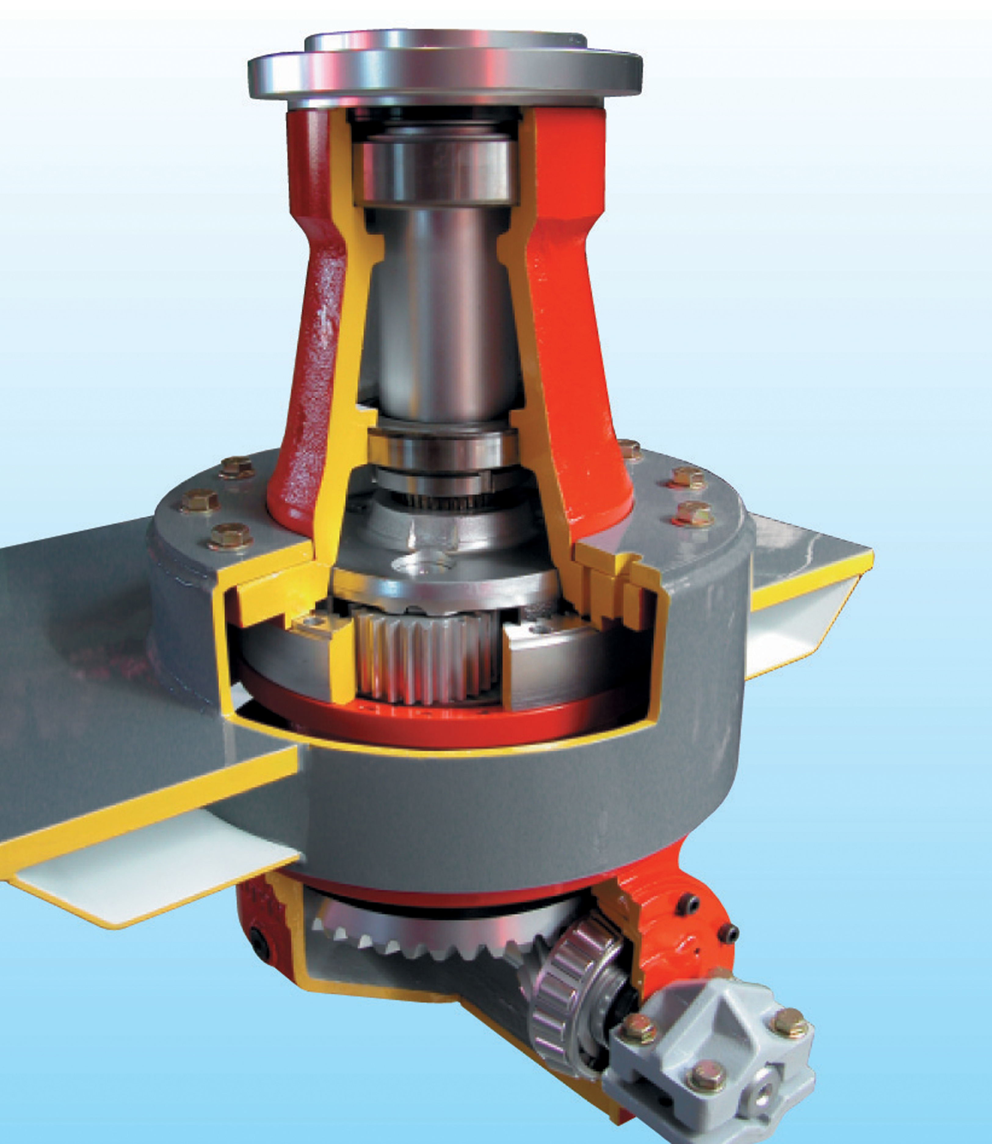 Механічна трансмісія складається з подвійного ряду підшипників. Це допомагає у поглинанні силових навантажень, що створюються шнеком на вал під час розрізання цілих рулонів.